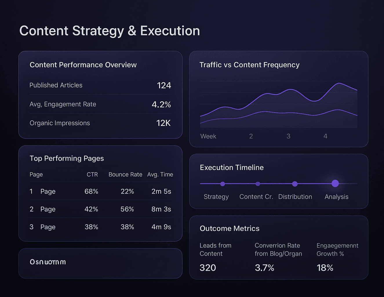 Site architecture, content systems, and internal linking built to support long-term growth, not short-term spikes.