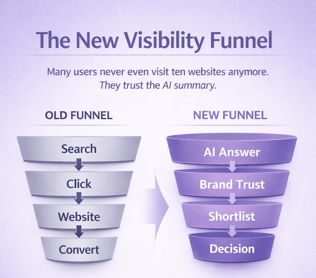 In many cases, users never even visit websites. They trust the AI summary. Whoever the AI mentions becomes the brand they remember.
